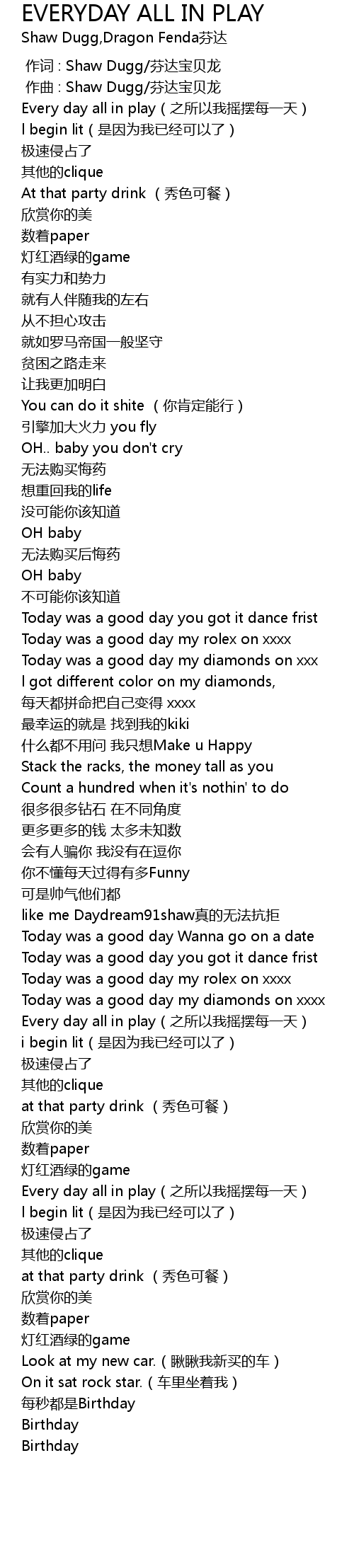 | [01:57.93] | Every day all in play zhi suo yi wo yao bai mei yi tian |