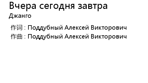| [00:00.00-1] | 作曲 : Поддубный Алексей Викторович |