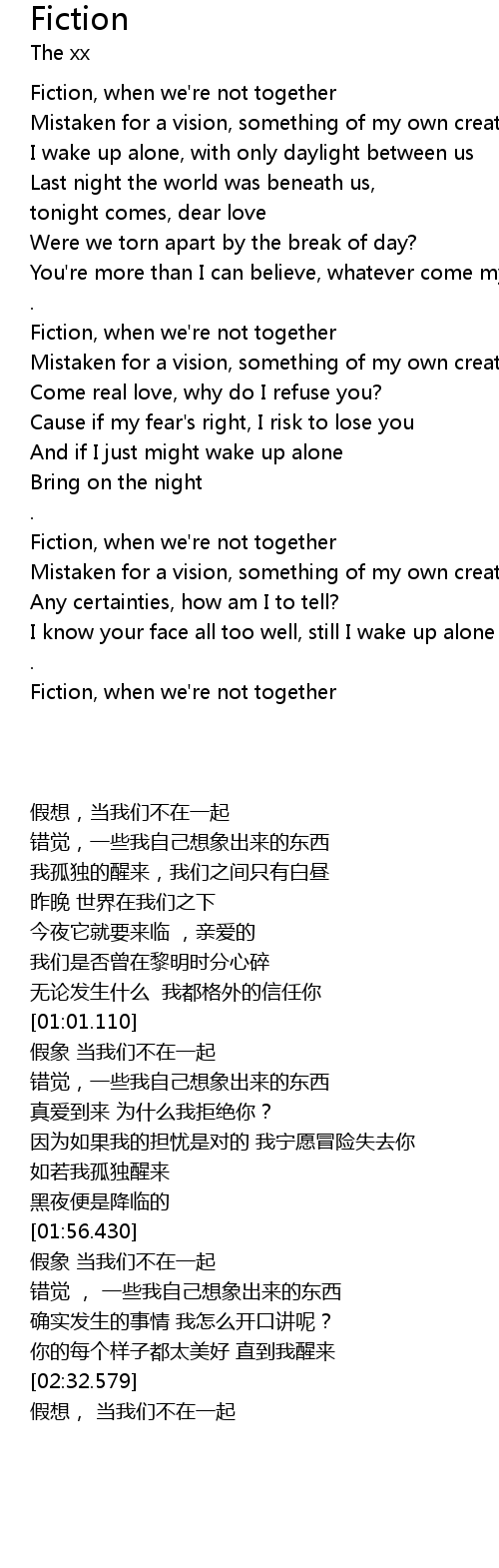 | [01:20.800] | Mistaken for a vision, something of my own creation |