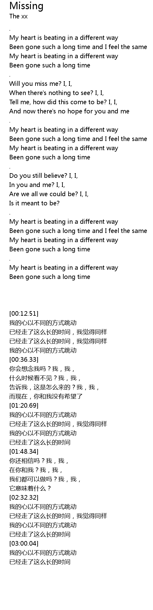 | [02:39.39] | My heart is beating in a different way |