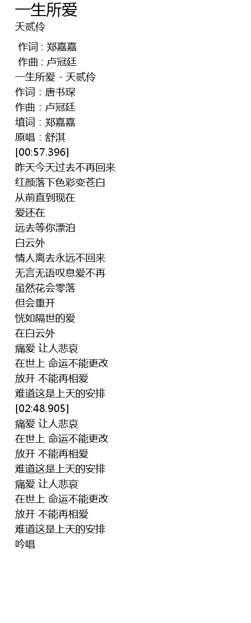 | [03:52.661] | 难道这是上天的安排 |