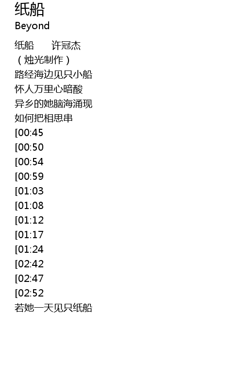 | [02:00][00:45] | 拾起张纸折只小船 |