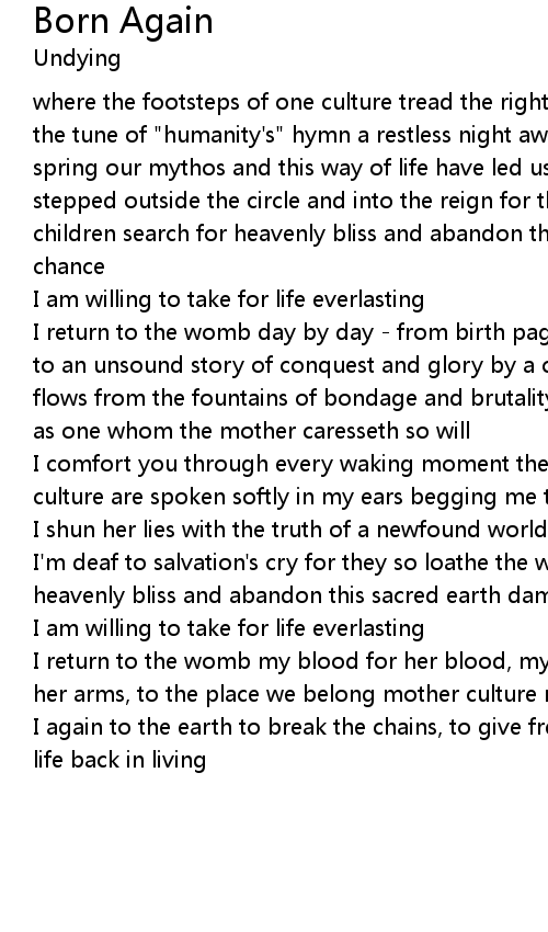 I again to the earth to break the chains, to give freedom a name and put the life back in living |