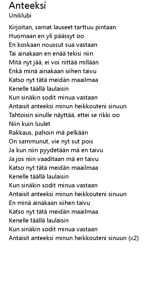 | Antaisit anteeksi minun heikkouteni sinuun x2 |