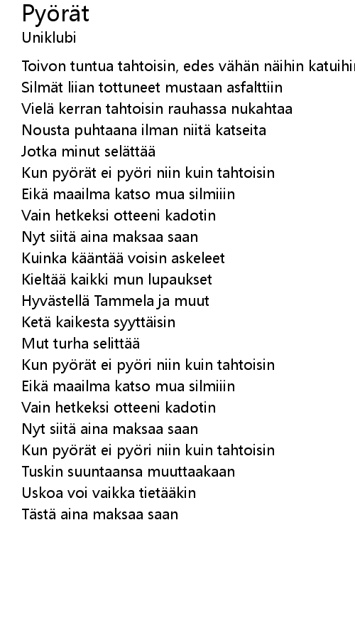 | Song | Pyörät |