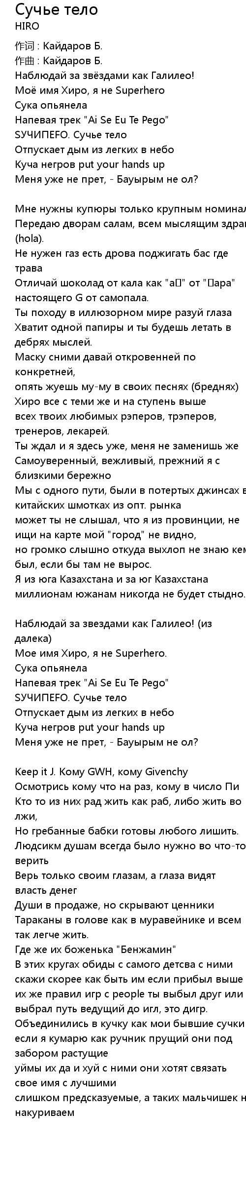 Сучье тело  Lyrics