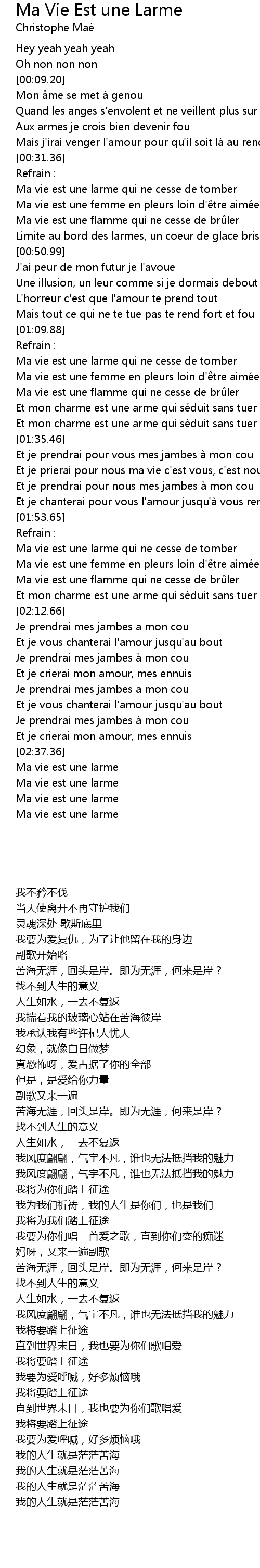 | [00:36.49] | Ma vie est une femme en pleurs loin d' tre aime e |