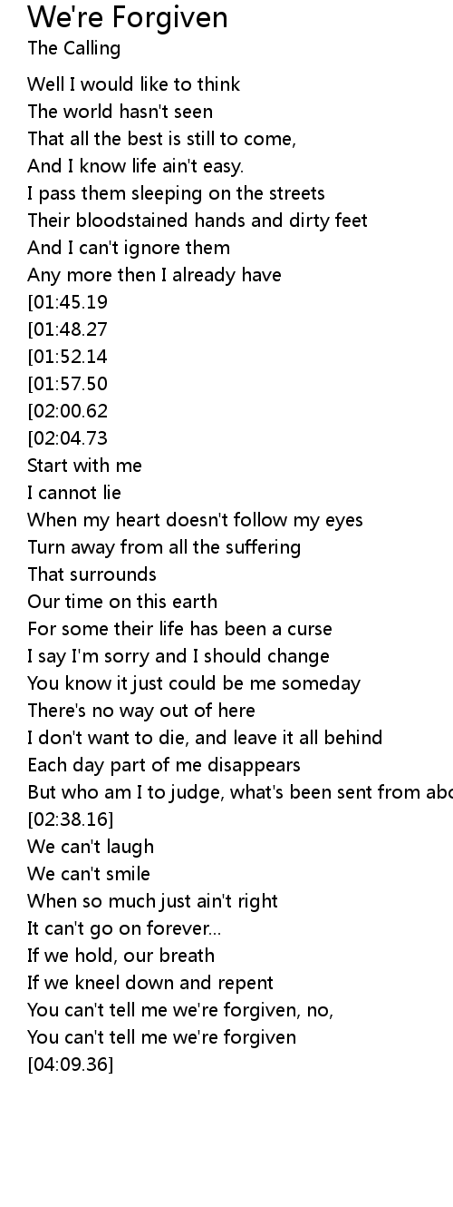 But don't tell me we're forgiven |
