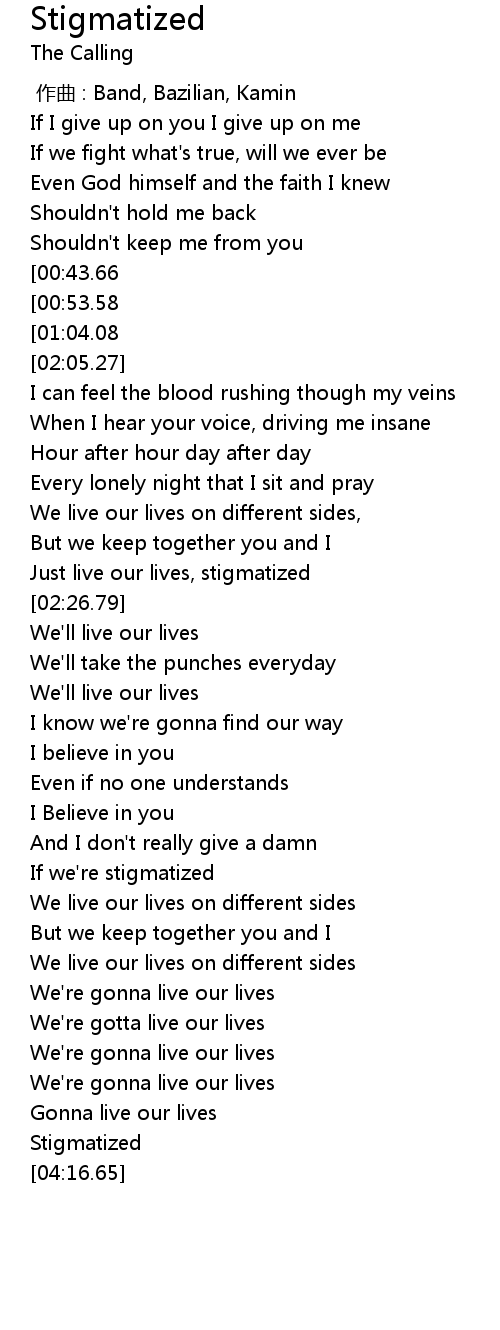 | [01:57.56][01:04.08] | And live our lives, stigmatized |