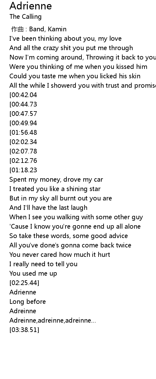 | [02:51.83][01:56.48][00:55.63] | Adrienne, I thought I knew you |