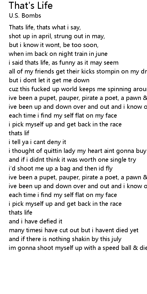 Thats life, thats what i say, |