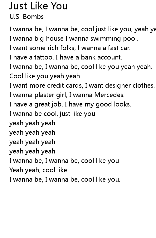 I wanna be, I wanna be, cool just like you, yeah yeah. |