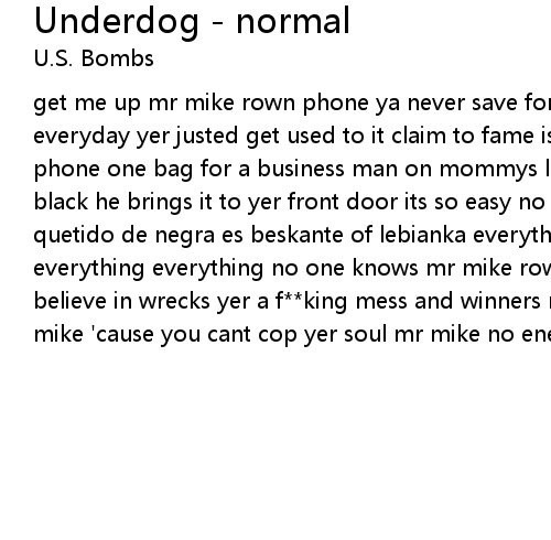 get me up mr mike rown phone ya never save for a wake chippin more of me everyday yer justed get used to it claim to fame is callin yer name mr mike row phone one bag for a business man on mommys loan its black and white its white black he brings it to yer front door its so easy no more money from yer mommy quetido de negra es beskante of lebianka everything i own even my sols everything everything no one knows mr mike row phone he live with mrs jones believe in wrecks yer a f**king mess and winners never quit unlucky night for mr mike 'cause you cant cop yer soul mr mike no energy its soakin up yer bones |