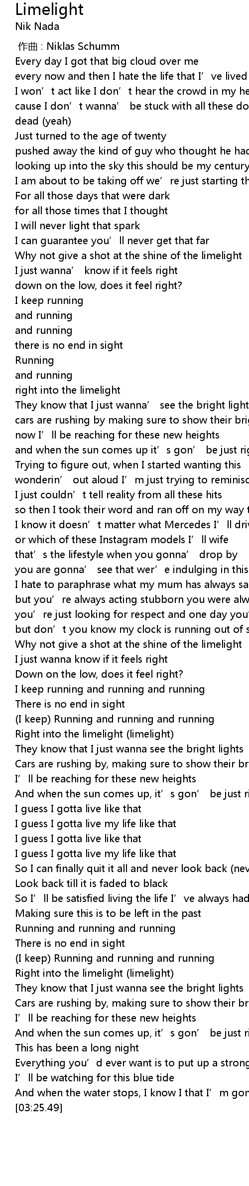 | [00:38.31] | Why not give a shot at the shine of the limelight |