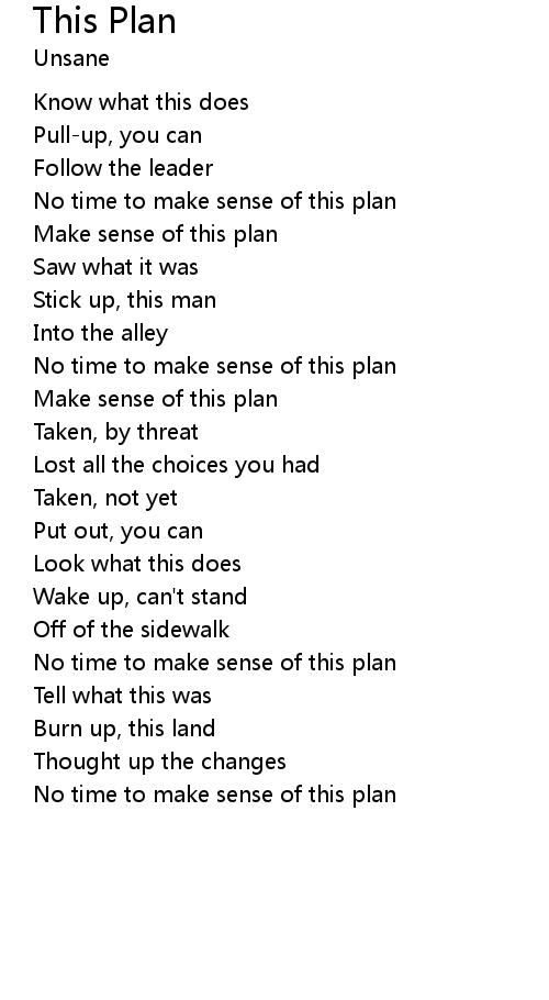 | Song | This Plan |