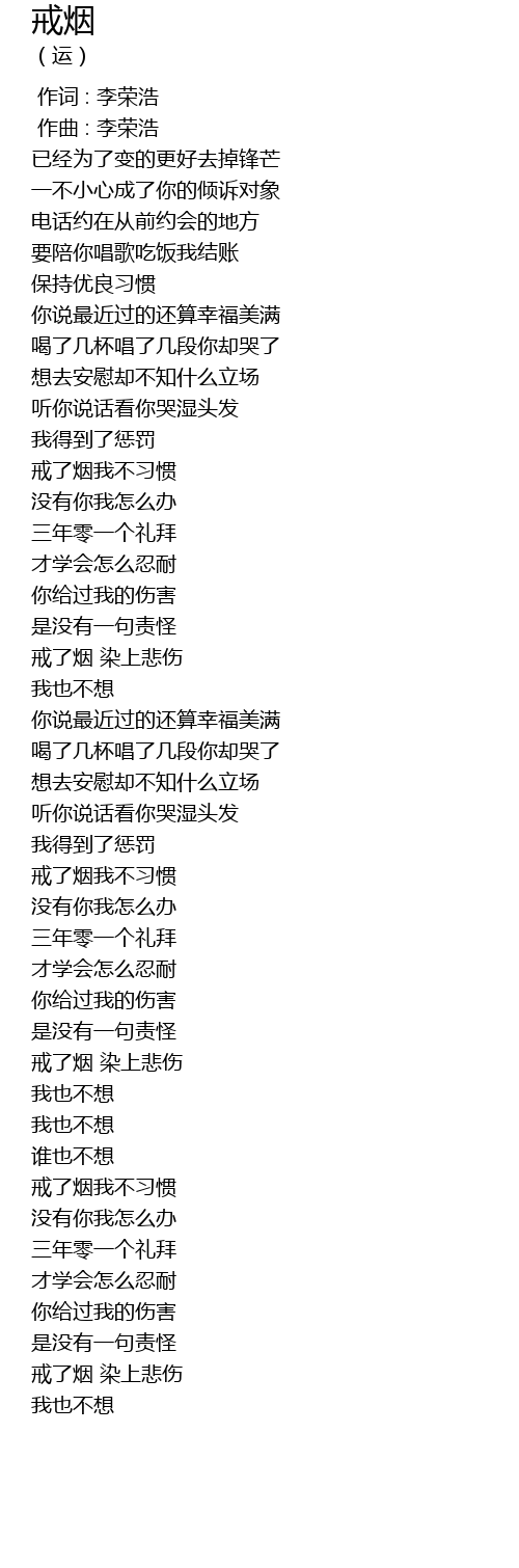 | [03:44.902] | jiè le yān wǒ bù xí guàn |