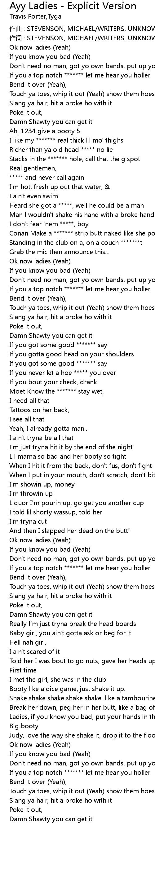 | Song | Ayy Ladies - Explicit Version |