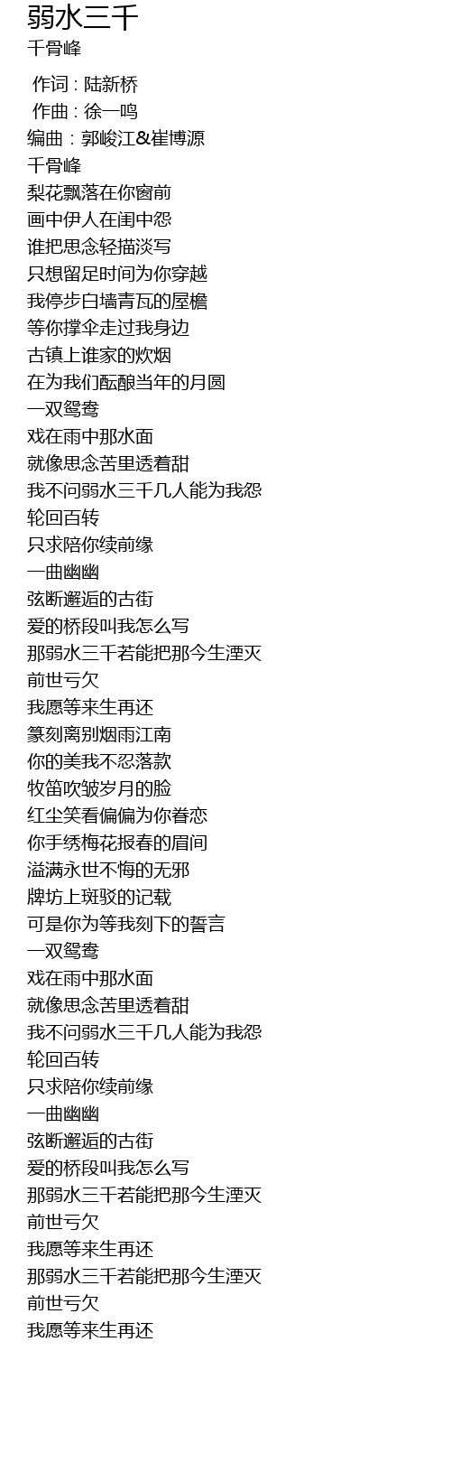 | [01:47.02] | 那弱水三千若能把那今生湮灭 |