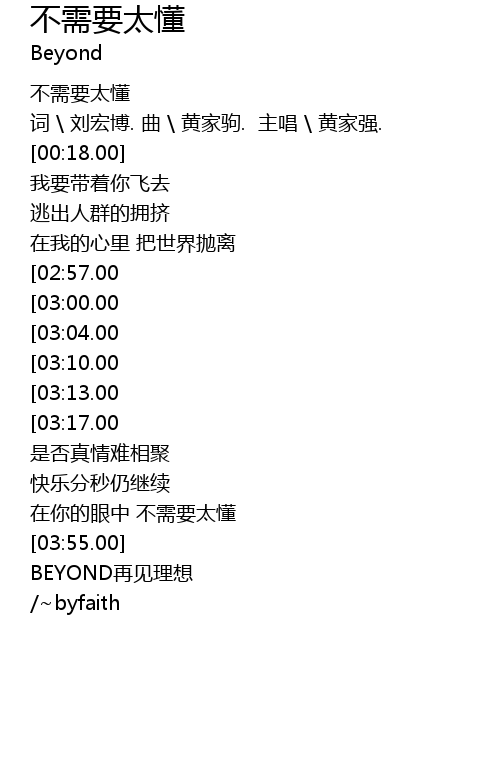 | [00:09.00] | 词 \ 刘宏博. 曲 \ 黄家驹. 主唱 \ 黄家强. |