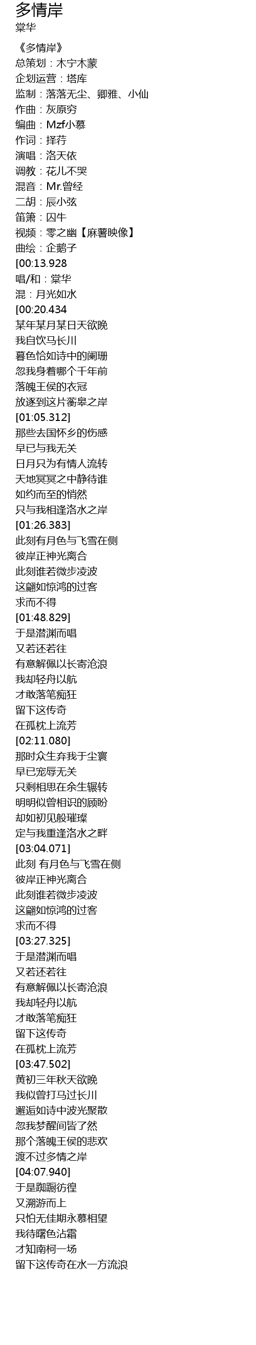 | [04:24.372] | 留下这传奇在水一方流浪 |
