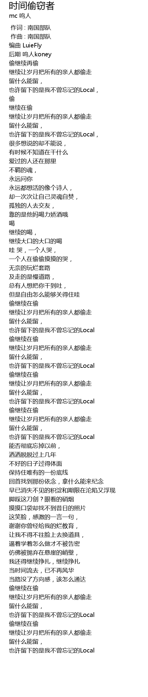 | [01:38.26] | 也许留下的是我不曾忘记的Local |