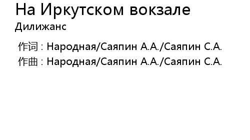 | Song | На Иркутском вокзале |