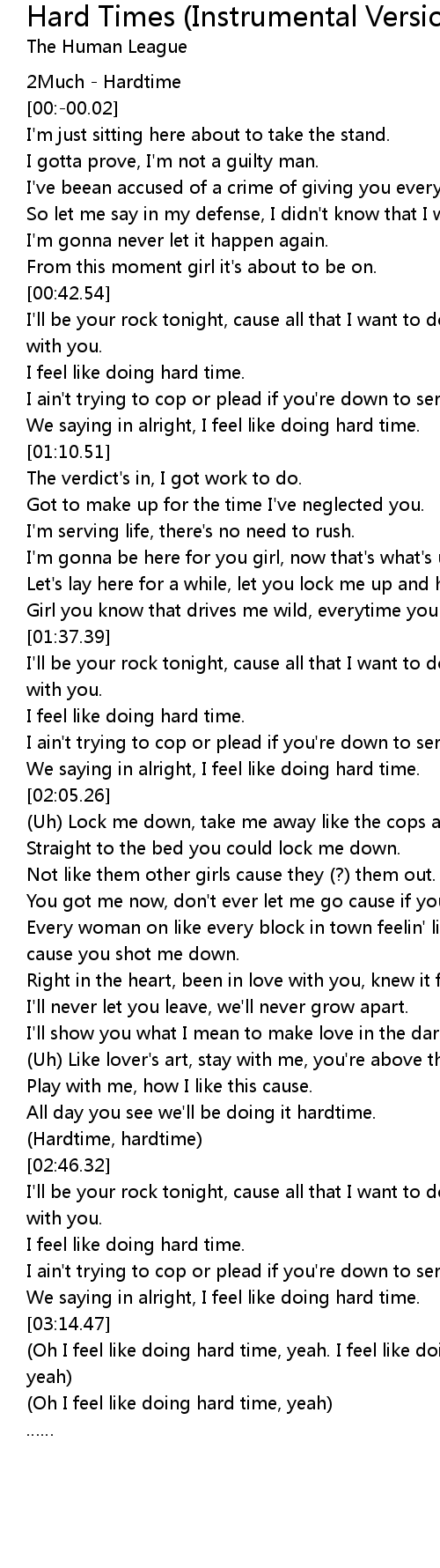 | [03:14.80] | (Oh I feel like doing hard time, yeah. I feel like doing hard time, yeah) |