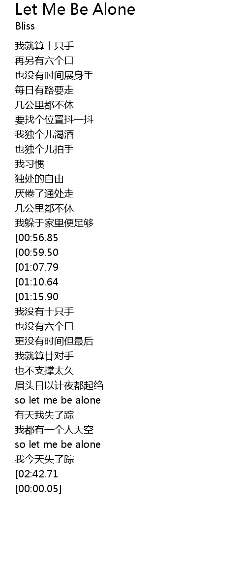 | [02:03.86][00:56.85] | so let me be alone |