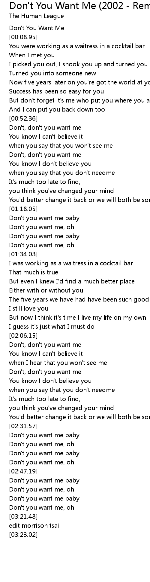 Don't you want me, oh |
