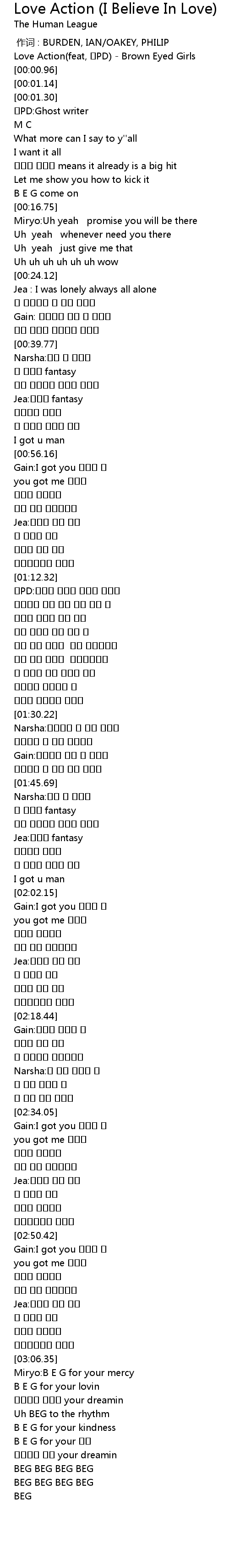 | [00:00.79] | Love Action(feat, 조PD) - Brown Eyed Girls |