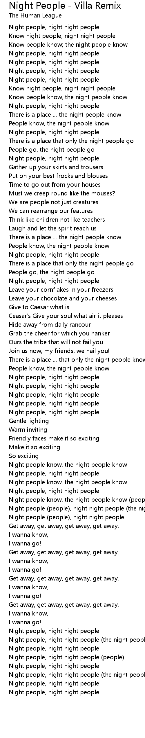 Night People - Villa Remix Lyrics