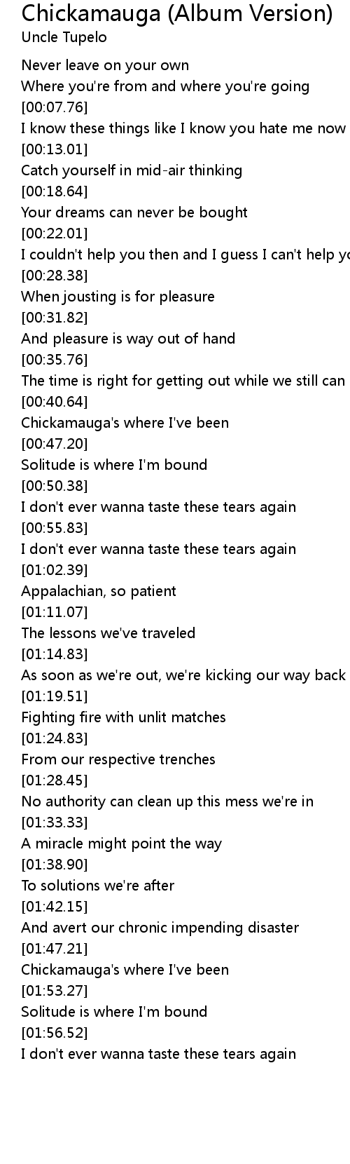Chickamauga's where I've been |