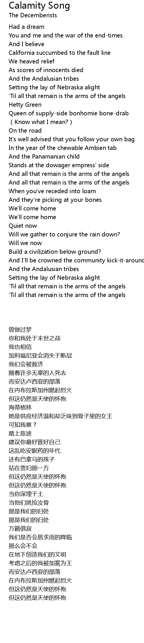 | [00:50.57] | ' Til all that remain is the arms of the angels |