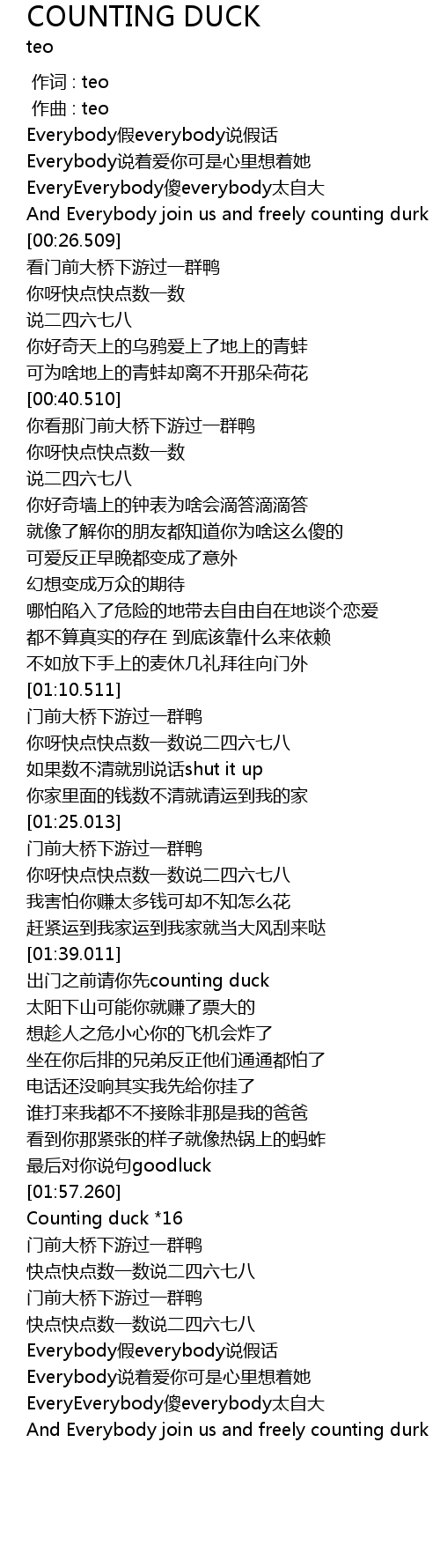 | [01:41.761] | chū mén zhī qián qǐng nǐ xiān counting duck |