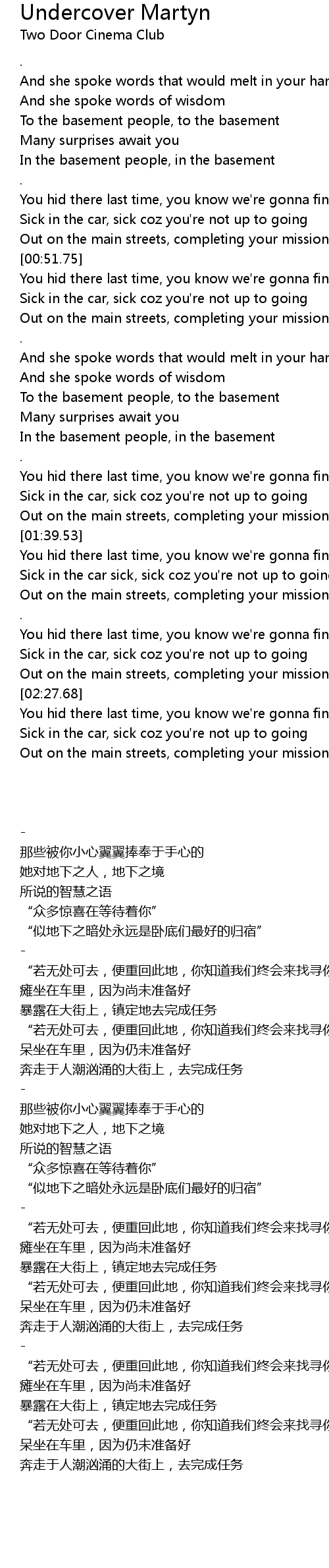 Undercover Martyn Lyrics