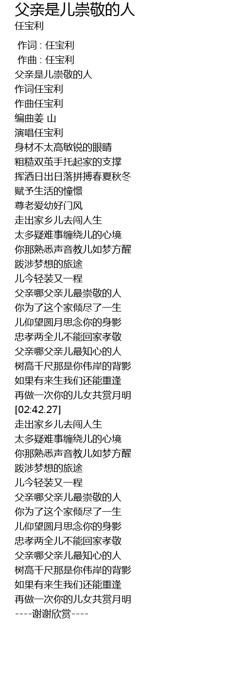 | [03:42.95] | 父亲哪父亲儿最崇敬的人 |