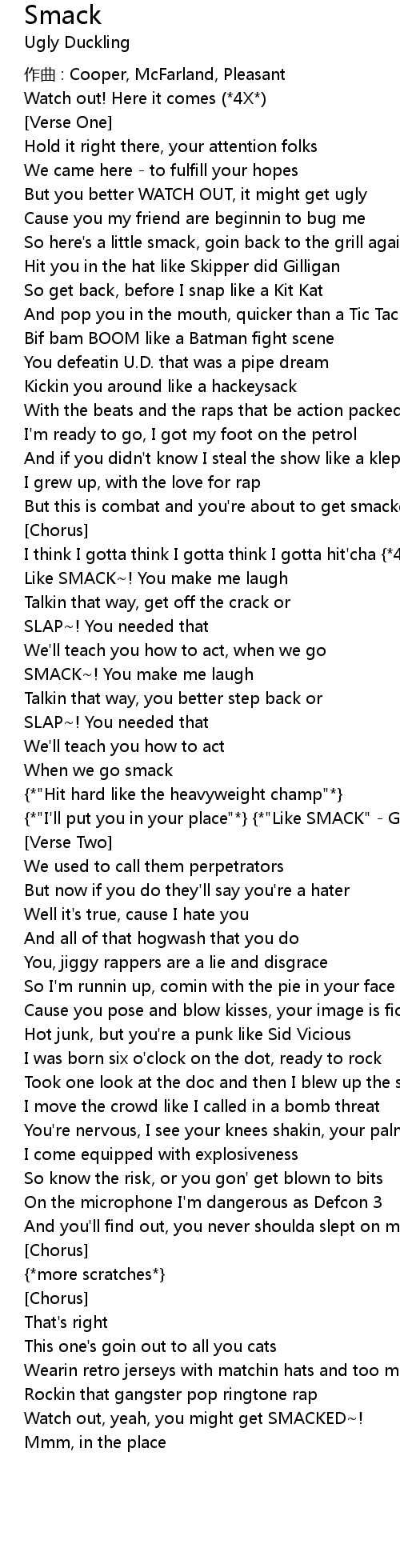 | " I' ll put you in your place" " Like SMACK" Guru | |