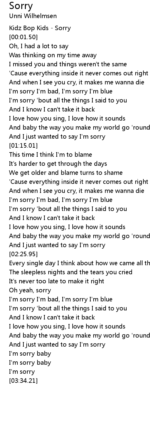 I'm sorry I'm bad, I'm sorry I'm blue |