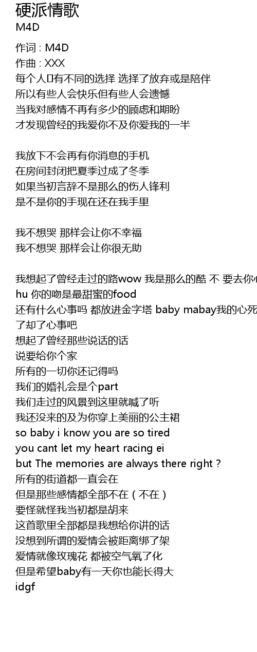 | 我想起了曾经走过的路wow 我是那么的酷 不 要去你心里面住 hu 你的吻是最甜蜜的food | |