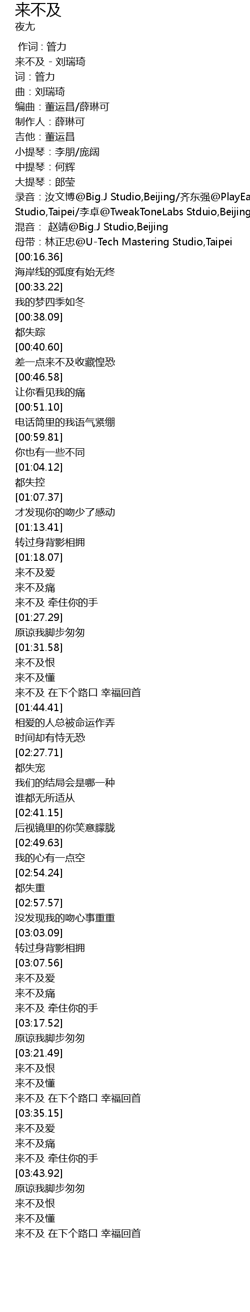 | [00:01.16] | 来不及 - 刘瑞琦 |