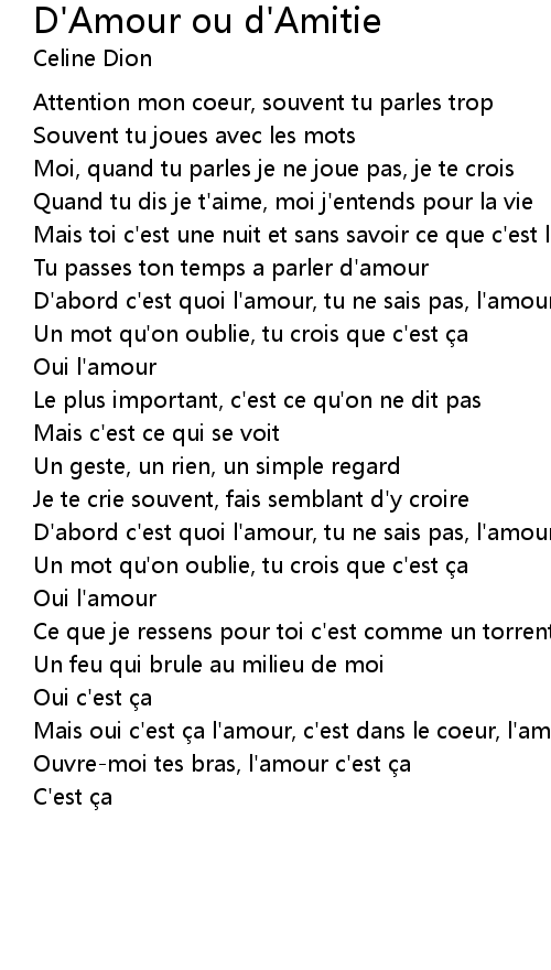 | [03:36.97] | Mais oui c' est a l' amour, c' est dans le coeur, l' amour |