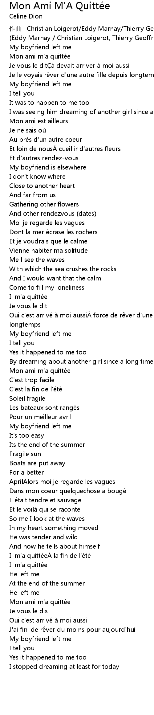 | Oui c' est arrivé à moi aussiÀ force de r ver d' une autre fille depuis longtemps | |