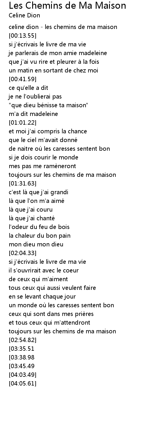| [00:00.00] | celine dion les chemins de ma maison |