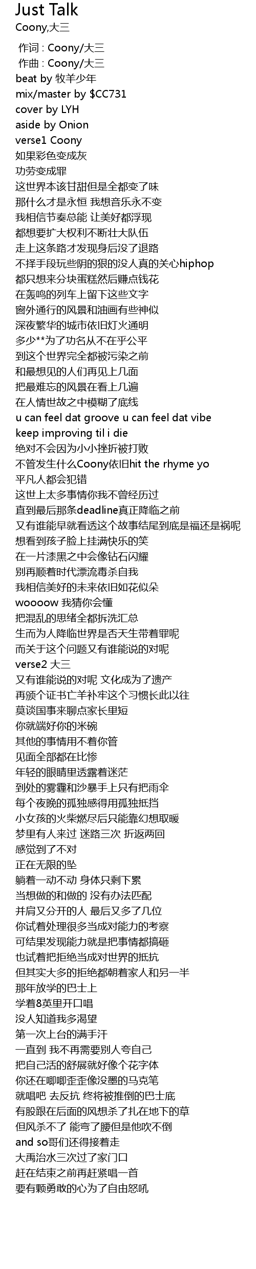 | [01:17.838] | 不管发生什么Coony依旧hit the rhyme yo |