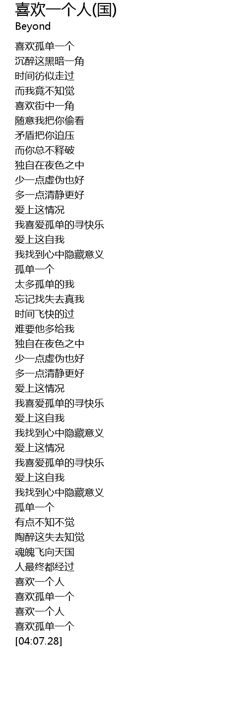 | [03:46.80] | xǐ huān gū dān yí gè |