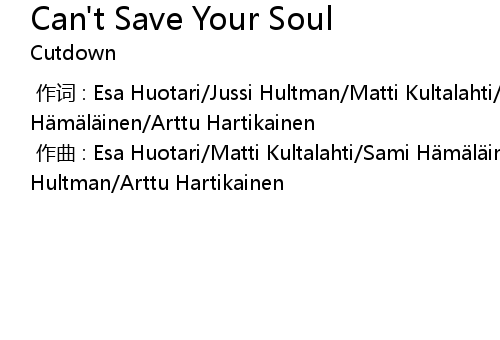 [00:00.00-1] 作词 : Esa Huotari/Jussi Hultman/Matti Kultalahti/Sami Hämäläinen/Arttu Hartikainen