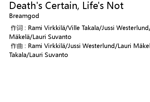 [00:00.00-1] 作词 : Rami Virkkilä/Ville Takala/Jussi Westerlund/Lauri Mäkelä/Lauri Suvanto