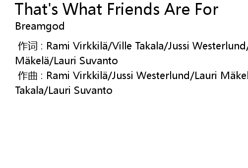 [00:00.00-1] 作词 : Rami Virkkilä/Ville Takala/Jussi Westerlund/Lauri Mäkelä/Lauri Suvanto