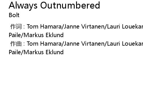 | [00:00.00-1] | 作词 : Tom Hamara/Janne Virtanen/Lauri Louekari/Dimitri Paile/Markus Eklund |