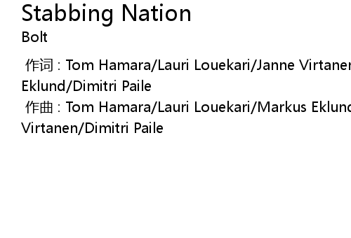 | [00:00.00-1] | 作词 : Tom Hamara/Lauri Louekari/Janne Virtanen/Markus Eklund/Dimitri Paile |